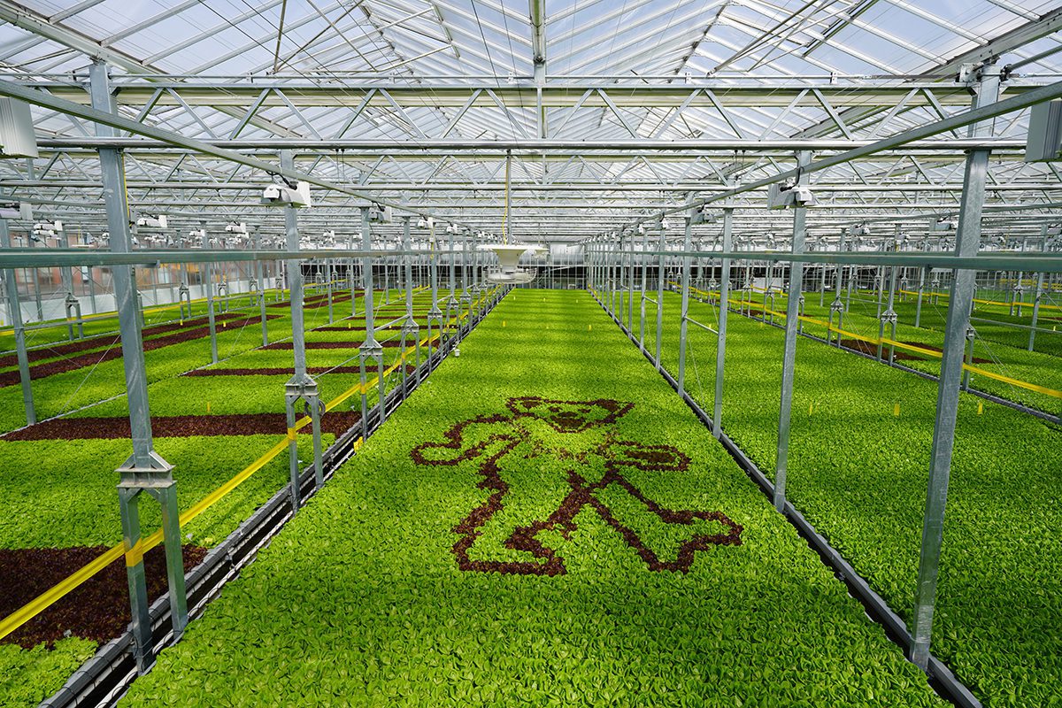 The key to greenhouse art is contrast (our distinct Red Oak Leaf pops against most of our other greens, like Crispy, Green Oak Leaf and Butterhead) and lots of thoughtful planning. We knew the designs would be good—but we didn’t know they would be this good. That dancing bear? Incredible!