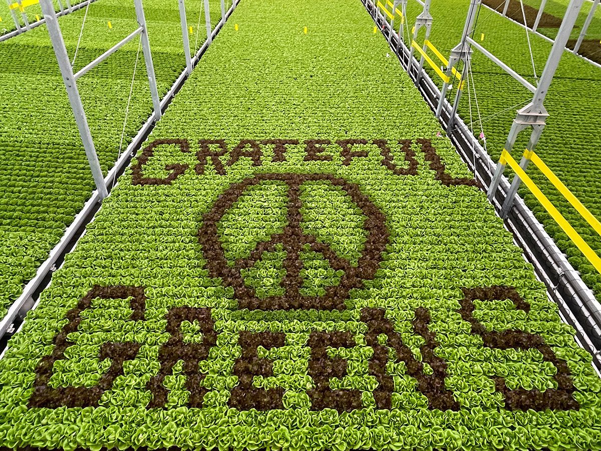 To celebrate our Grateful Greens collaboration with the Grateful Dead, we challenged our multi-talented growing teams in Providence, Chicago, Davis and Baltimore to grow some Grateful Dead-inspired greenhouse art. (You can probably guess what our greenhouse playlists have sounded like for the past few weeks.)